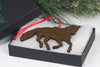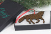 This hand made 1/8" thick composite wood laser cut horse would look great on an equestrian's Christmas tree during the holidays, on the mantel, hanging on the wall or wherever is most fitting. The ornament will come with a gift box which is perfect to use for easy gifting and for storage once the holidays are over..125" thick composite wood is laser cut and printed to make unique horse ornaments exclusive to Classy Equine. The back side of the ornament is a dark brown. The printed front side is glossy.