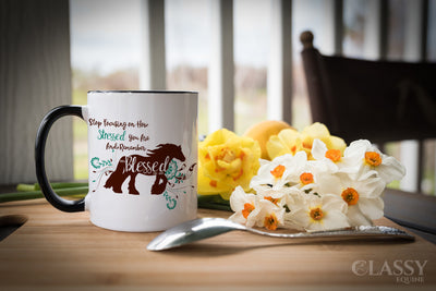 "Stop focusing on how stressed you are and remember how blessed you are." I need this reminder often and love that I have it on a Gypsy horse mug I use daily!